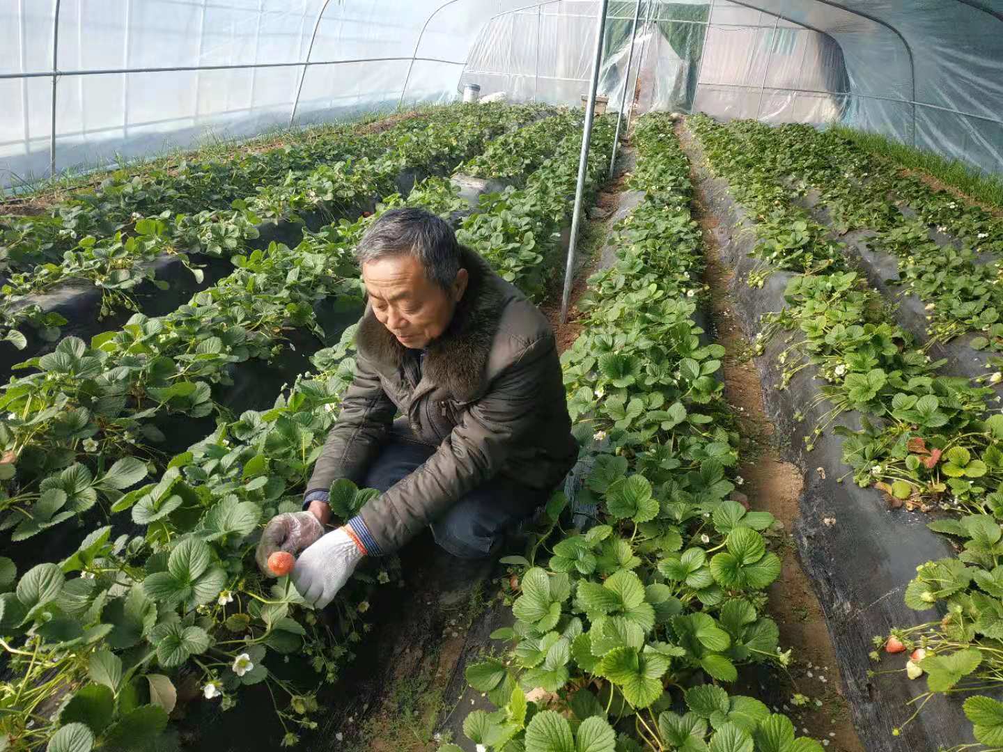 功夫不負(fù)有心人,成功眷顧有志人。草莓紅了,采摘者和訂單接鍾而至,李為昌滿臉皺紋也笑成了一朵花。他說:“現(xiàn)在有20個(gè)大棚,每個(gè)棚占地640平方米,我們村23戶貧困戶每家出一個(gè)勞力參與勞務(wù)。他們?nèi)〉昧说谝皇纸?jīng)驗(yàn),以后就可以自己干,我給他們提供技術(shù)、物資和平臺”