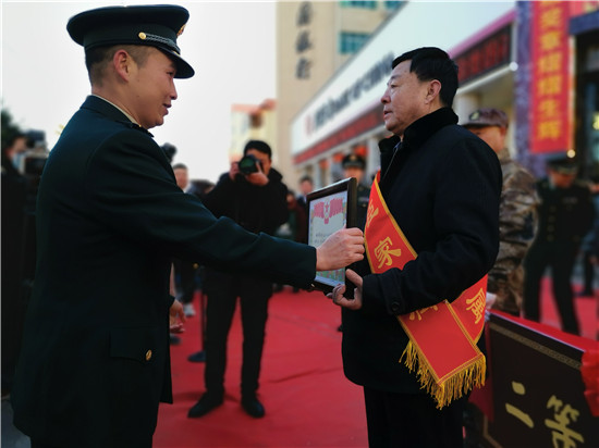“這么冷的天沒想到軍地領導親自上門送喜報,還定制了功臣之家的光榮牌匾……”看到送喜報“隊伍”的到來,趙金豹激動地連說到。