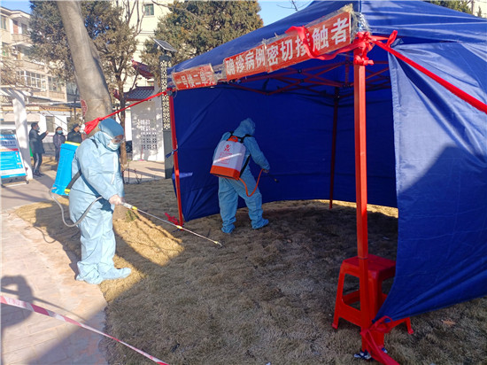 演練開始后,公安部門按照新冠肺炎疫情公共衛(wèi)生應急處置預案要求,立即下達指令,派出所民警到達現(xiàn)場維護秩序,區(qū)域控制,拉警戒線,嚴格管控人員,禁止一切車輛和人員通行。街道辦事處迅速組織社區(qū)干部及社區(qū)網(wǎng)格員開展核酸檢測和宣傳動員工作,根據(jù)應急預案分工開展群眾宣傳動員工作,并對患者居住單元電梯樓道等公共區(qū)域進行消毒。工作人員到確診患者家對2名密切接觸者進行流調和健康教育,將密切接觸者用120負壓救護車單人單車轉運至集中醫(yī)學隔離觀察點,對確診病例家庭環(huán)境進行采樣和消殺。