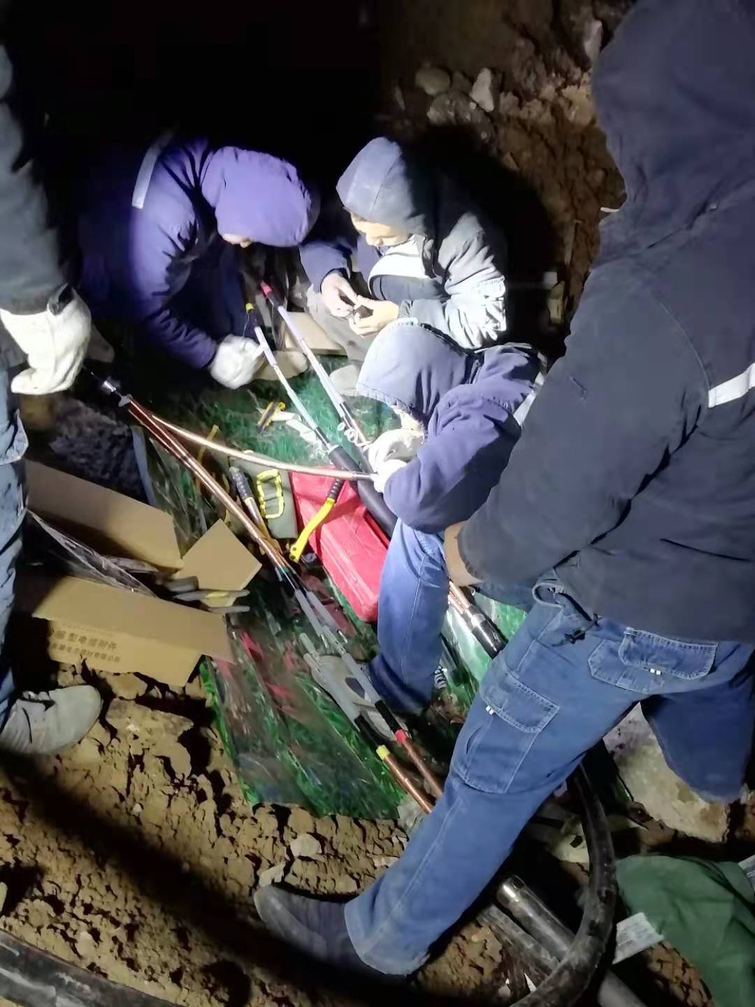 據介紹,1月14日14時許,該處因施工造成電力電纜破壞,蓮花路中段大面積停電, 國網周口供電公司搶修人員在接到消息后立即進行搶修,于當晚恢復正常供電。1月15日 18時許,該處相隔不遠的10千伏富7板蓮花路線遭到破壞,導致附近950余戶用戶停電。 接到搶修任務后,國網周口供電公司組織搶修車輛、搶修人員及時到達現場,因地下污 水管道同時遭到破壞斷裂,電纜被泡在污水池內,搶修工作受到影響。在克服夜間作業(yè) 光線差、難度大等問題后,搶修人員經多方努力于1月16日凌晨對停電影響用戶恢復供電 。