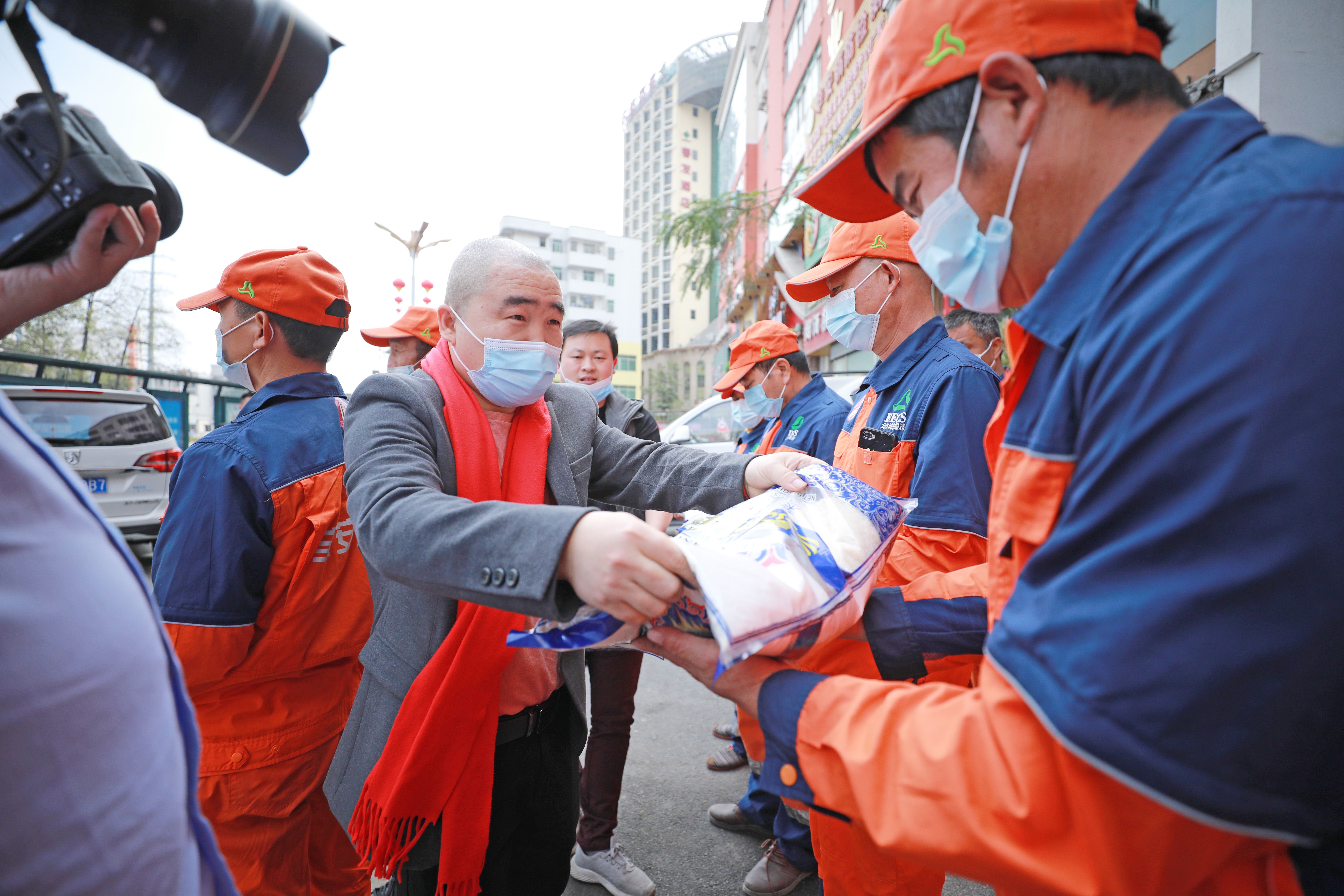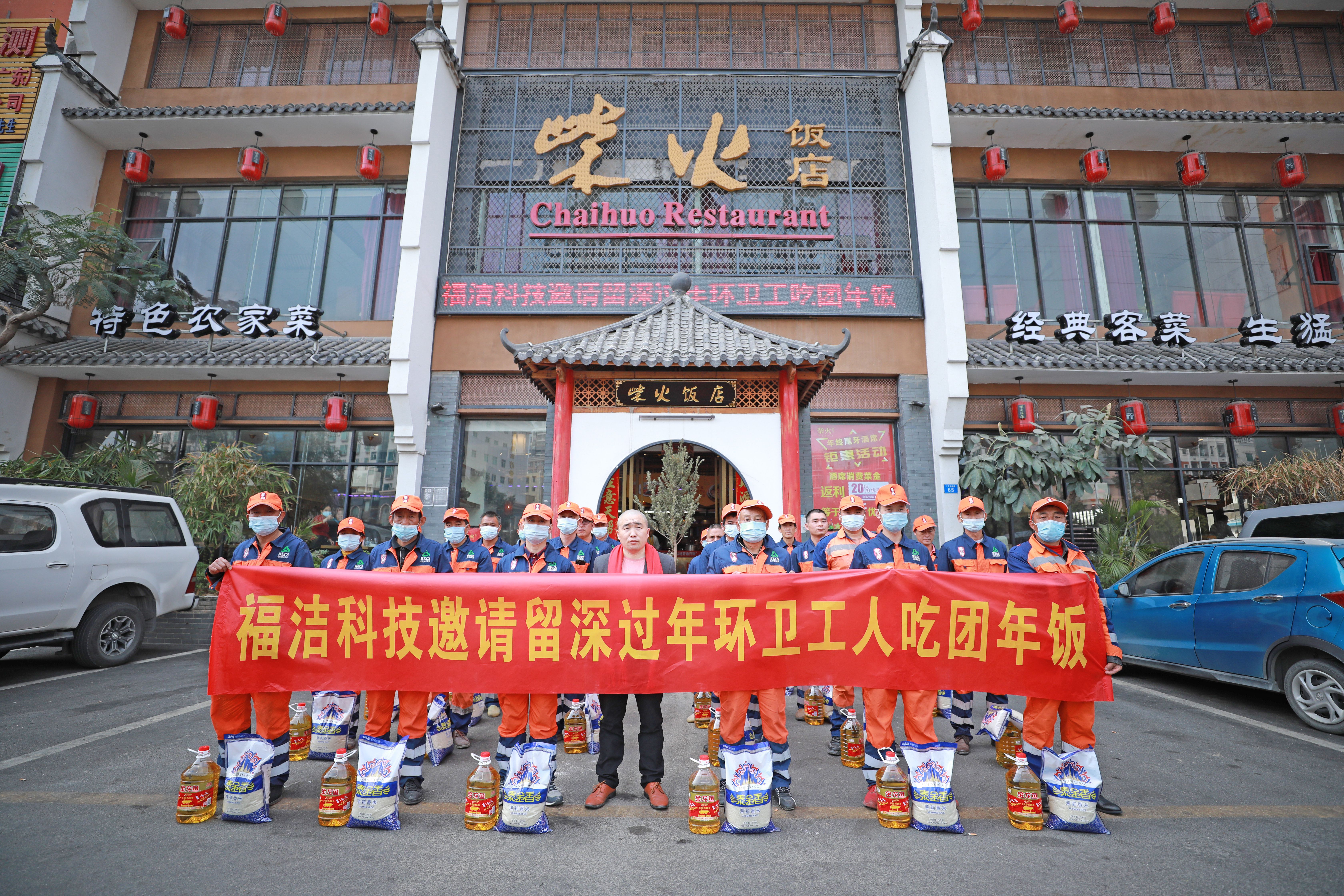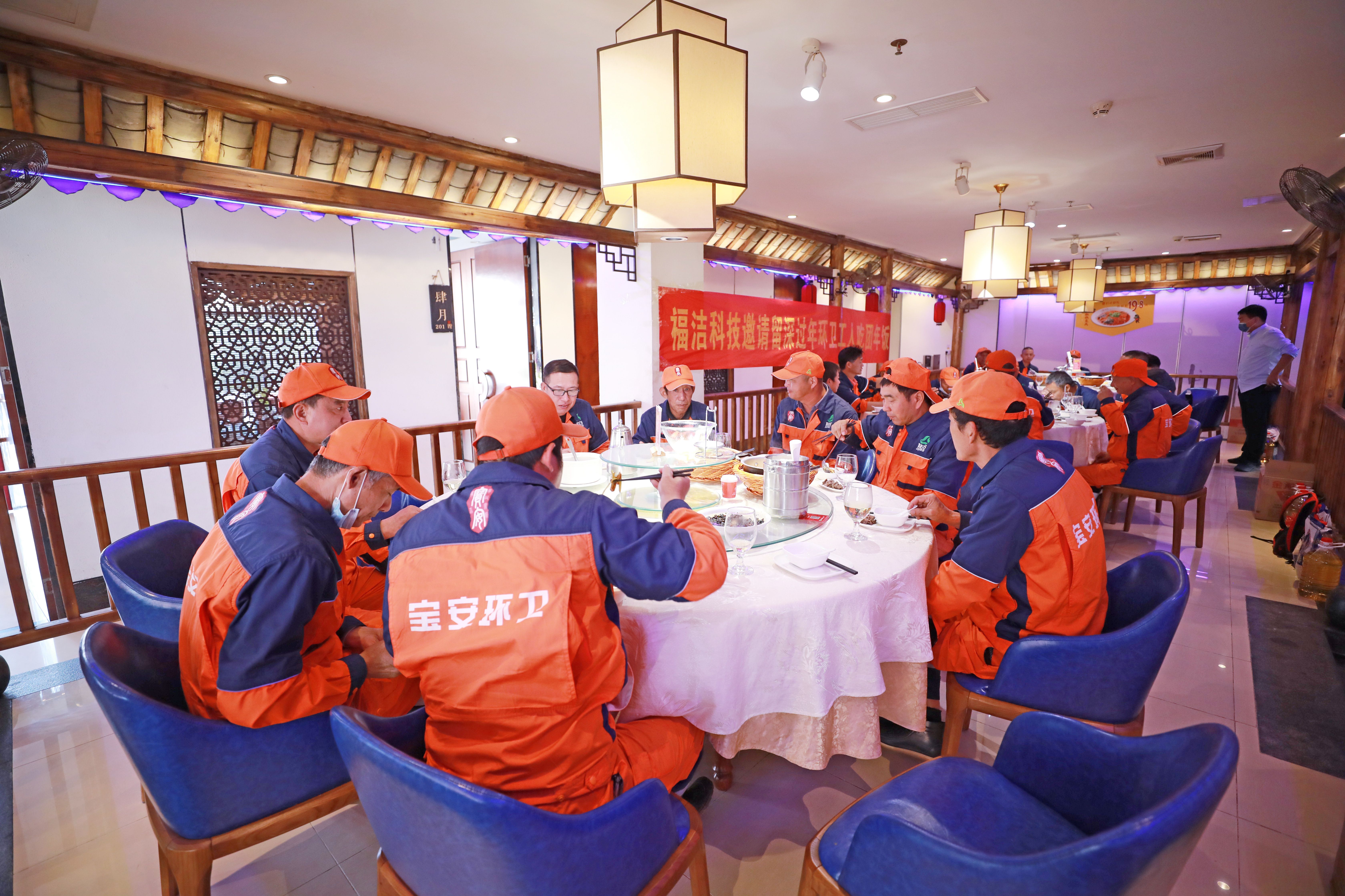“今年過年我們都留在深圳了,張老板很有愛心,經(jīng)常關照我們環(huán)衛(wèi)工,很感謝他!”1月27日中午,在深圳寶安區(qū)新橋街道北環(huán)路柴火飯店,近30名(大部分為河南籍)留深過年的環(huán)衛(wèi)工在一起吃團年飯,菜肴飄香,其樂融融。做東的是深圳市福潔科技公司的老板張高鵬。當日中午,環(huán)衛(wèi)工們剛結束上午的工作,身穿工作服走進深圳寶安區(qū)新橋街道柴火飯店。愛心老板張高鵬在門口迎接,并為大家送上大米、金龍魚油和新年祝福。白切雞、龍骨靚湯、小炒肉、紅燒肉、紅燒鯉魚、梅菜扣肉……餐桌上擺滿了各式菜肴,供環(huán)衛(wèi)工人們享用。大家一邊品嘗美味,一邊拉起家常。