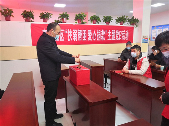 春節(jié)將至,歲寒情深。為確保困難群眾“過暖冬”“過好年”,1月29日上午,鄲城縣洺南辦事處李莊社區(qū)組織開展“扶弱幫困,愛心捐款”主題黨日活動(dòng)?!拔覀儠?huì)盡自己最大的力量幫助他們解決實(shí)際困難,祝愿他們度過一個(gè)溫暖的春節(jié)。”社區(qū)黨支部書記、主任王超勤表示。