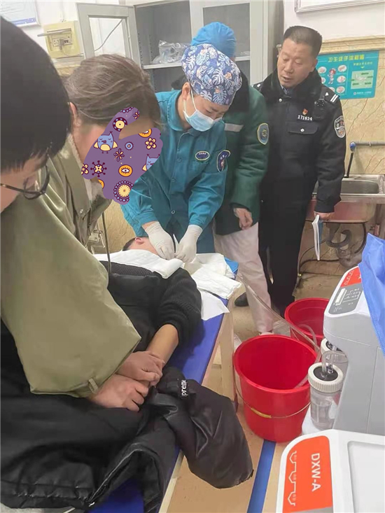 當日21時許,在該賓館一房間,丁高嶺通過半掩的門,發(fā)現(xiàn)了輕生男子,急忙沖過去,取下了吊在其脖子上的電話線,立即通知120醫(yī)生進行救治,并與醫(yī)生一起將其拉至項城市第一人民醫(yī)院進一步治療。張某某極不配合、拒絕救治,丁高嶺苦口婆心勸說,并電話聯(lián)系到其父母,共同做其思想工作。經(jīng)過規(guī)勸,急救醫(yī)生才得以對其進行洗胃等對癥處置,經(jīng)過近40分鐘的搶救,張某某終于脫離了生命危險。