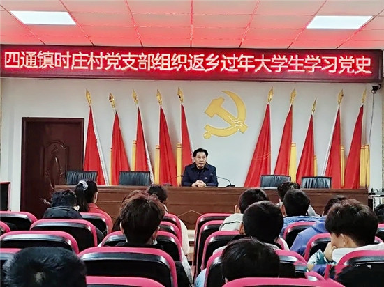 在當(dāng)日活動中,該村黨支部書記時興榮帶領(lǐng)返鄉(xiāng)大學(xué)生參觀時莊村中共黨史館,并為他們現(xiàn)場講解中國共產(chǎn)黨從一大到十九大的黨史歷程,隨后他們又一起前往時莊黨校進行學(xué)習(xí)。“之前我們沒有學(xué)過黨史,也不太了解黨史,通過今天這一課,我們才真正了解到我黨的發(fā)展歷史。作為新時代的大學(xué)生,學(xué)業(yè)有成后,我們一定要報效祖國,一定要不忘初心、牢記使命,為中華民族的復(fù)興努力奮斗作出貢獻,堅決做到聽黨話、跟黨走、報黨恩?!眳⒓踊顒拥拇髮W(xué)生時曼銀說。