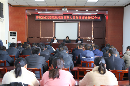 2月19日,鄲城縣自然資源局對新調(diào)整人員進(jìn)行任前廉政談話。會議由局辦公室主任潘梅主持。局黨組成員、副局長朱云英出席會議并講話。局機(jī)關(guān)各股室及各自然資源所中層干部參加會議。