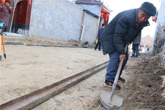 村里找來工程隊(duì)立即開始動(dòng)工修路,群眾自發(fā)來幫忙?!按謇锎蠼中∠锶啃奚狭怂嗦?,這是幾十年來最大的喜事!”李知中邊干活邊笑著說,“我身子骨還算硬朗,就主動(dòng)過來干些力所能及的活,現(xiàn)在全村1500多米的大街小巷即將開始澆筑水泥,修好后給全村帶來了很大的便利,很感激村委領(lǐng)導(dǎo)為群眾辦實(shí)事?!?/p>