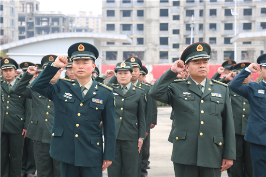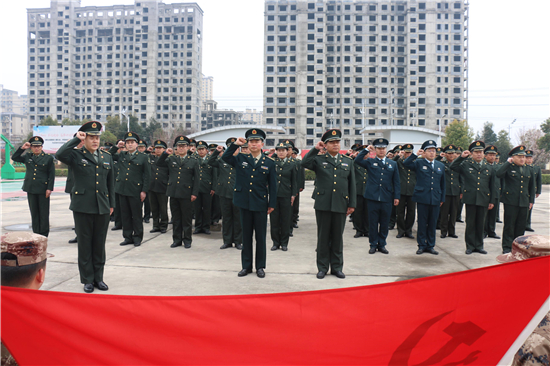 2月26日下午14時(shí),西華縣人武部營(yíng)區(qū)內(nèi),鮮紅的黨旗迎風(fēng)飄揚(yáng)。來(lái)自全縣17個(gè)鄉(xiāng)鎮(zhèn)、5個(gè)城區(qū)辦事處武裝部的全體專武干部黨員與該部現(xiàn)役干部、文職、職工黨員共計(jì)60余人集聚這里,隆重集體過(guò)“政治生日”。