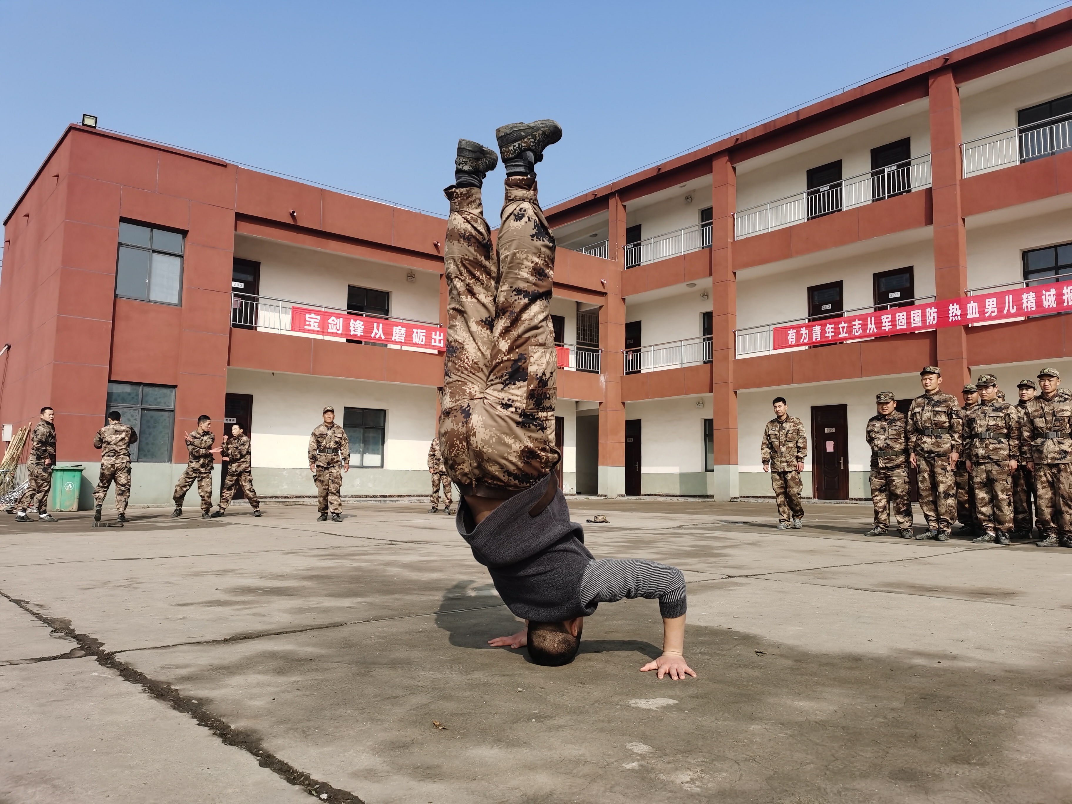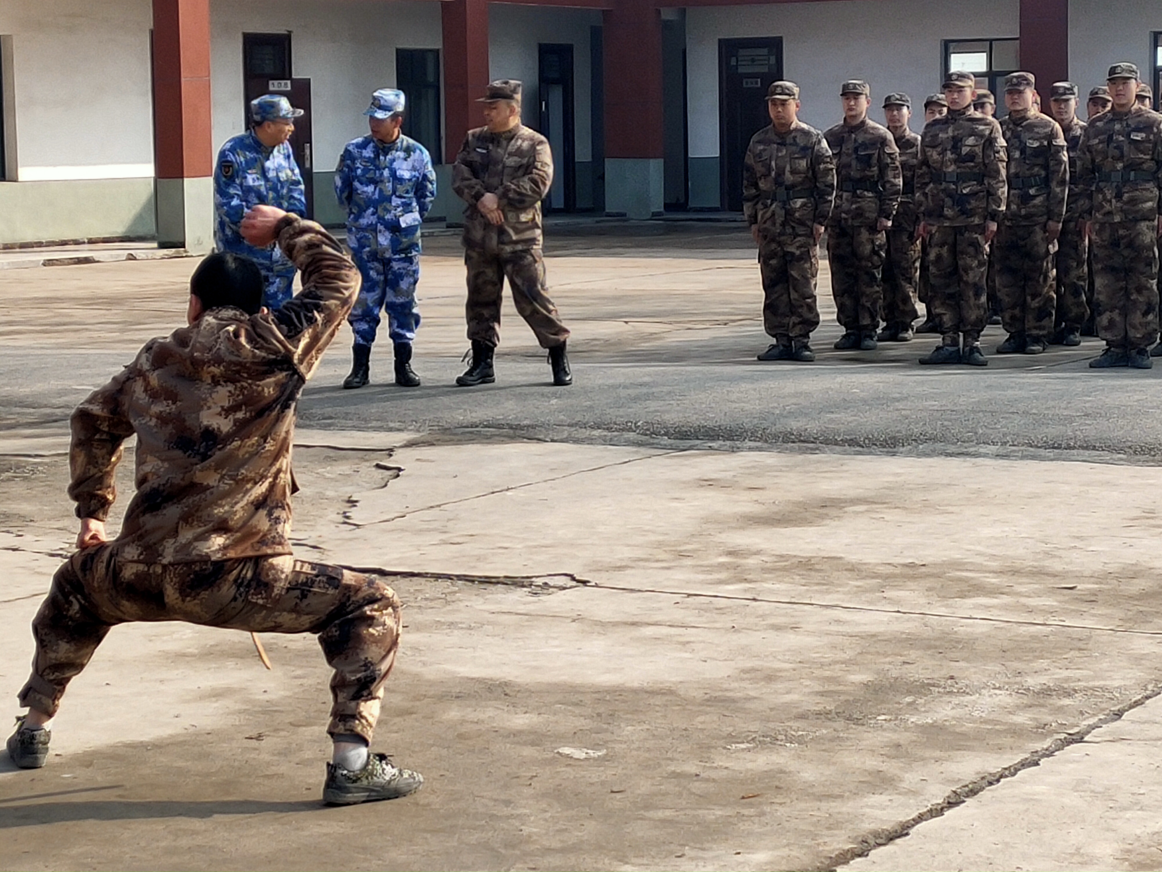 “報告首長,我叫趙三朋,畢業(yè)于武漢體育學院,武術(shù)套路、散打和兵器專業(yè)?!痹趹?zhàn)友們的歡呼聲中,趙三朋主動請纓表演了一套傳統(tǒng)武術(shù)套路,只見他一招一式行云流水、虎虎生威 ,前后空翻嫻熟到位、收放自如,迎得戰(zhàn)友們陣陣喝彩聲,湯維政也禁不住連聲稱贊。