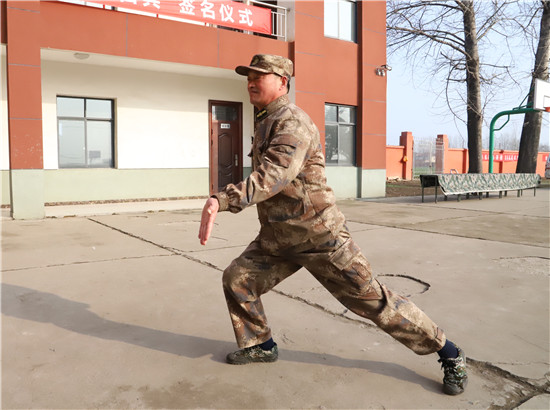 同時(shí),王成華也很幽默,深受準(zhǔn)新兵的喜愛,“在這個(gè)隊(duì)伍里,說(shuō)不定你的爸爸當(dāng)年當(dāng)兵時(shí)就是我訓(xùn)練的。起初,大家叫我‘王班長(zhǎng)’,后來(lái)叫我‘老班長(zhǎng)’,現(xiàn)在叫我‘班長(zhǎng)王’,是不是覺(jué)得我太老了?來(lái),我給大家打一套軍體拳!不服的上來(lái)試試?!?/p>