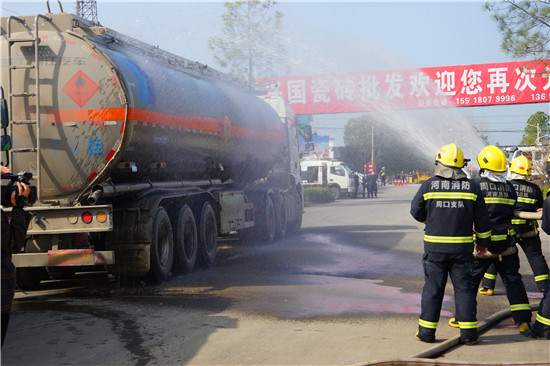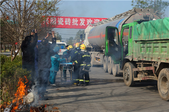 據(jù)介紹,通過本次演練,河南省公安交警總隊、周口市公安局、項城市委市政府進一步檢驗了對危險品運輸車事故的應(yīng)急反應(yīng)和處置能力及省際?;方煌ㄊ鹿示仍幹玫目茖W(xué)性、適用性和可操作性,促進了應(yīng)急搶險工作的規(guī)范化、常態(tài)化,加強了交警、應(yīng)急、環(huán)保、消防、醫(yī)療、交通、搶險救援等各部門協(xié)作聯(lián)動,提高了應(yīng)急管控水平,取得了良好的社會效果。②10