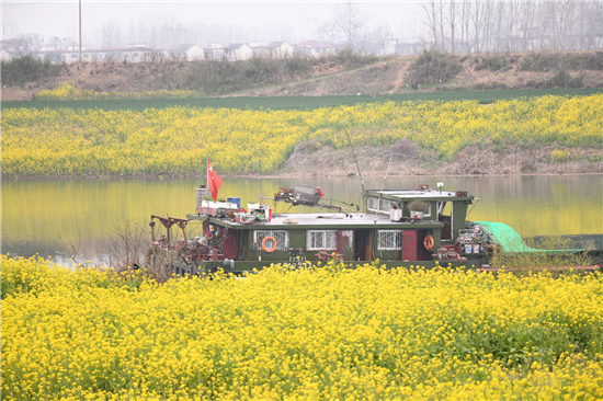 近日,盡管天氣乍暖還寒,沙潁河周口上游段油菜花已競(jìng)相開放。蜿蜒碧水兩畔,金黃色的油菜花燦如錦緞。輪渡行進(jìn)在碧水和花錦之間,如走進(jìn)畫廊。②8