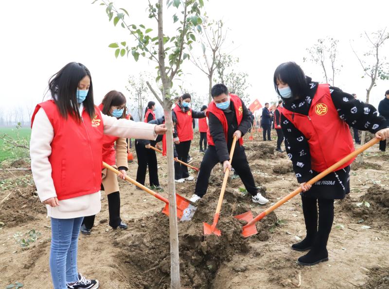 草長(zhǎng)鶯飛,春回大地。3月12日,在第43個(gè)植樹節(jié)之際,全市掀起義務(wù)植樹熱潮,黨員干部、志愿者、市民踴躍參與義務(wù)植樹活動(dòng)。扶正樹苗、揮鍬培土、分層踩實(shí)、堆起圍堰、提水澆灌,認(rèn)真地完成著每一道工序,栽下了一棵棵樹苗,為改善生態(tài)環(huán)境、綠化美麗家園種下了一棵棵綠色的希望。圖為鄲城縣義務(wù)植樹現(xiàn)場(chǎng)。