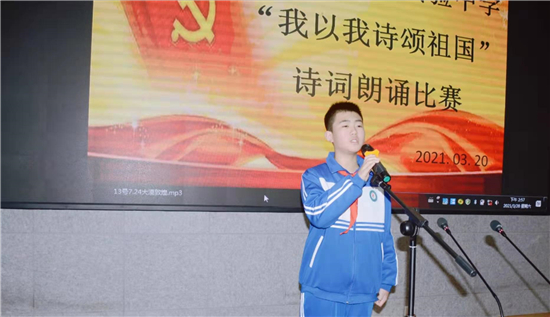 “我是你掛著眼淚的笑渦/我是新刷出的雪白的起跑線/是緋紅的黎明/正在噴薄/——祖國??!”一句句飽含深情的朗誦,一陣陣熱情如潮的掌聲。3月20日下午,鄲城縣第二實驗中學(xué)“我以我詩頌祖國”學(xué)生愛國詩詞朗誦比賽熱烈舉行。