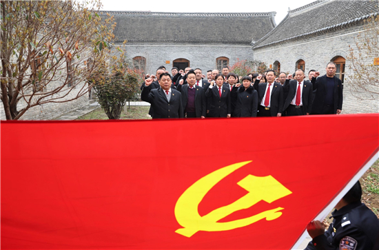 戰(zhàn)爭的硝煙早已散去,烈士的英名與浩然正氣長存。在吉鴻昌將軍的塑像前,朱仲文領誓,全體干警面對鮮紅的黨旗莊嚴宣誓,重溫入黨誓詞。