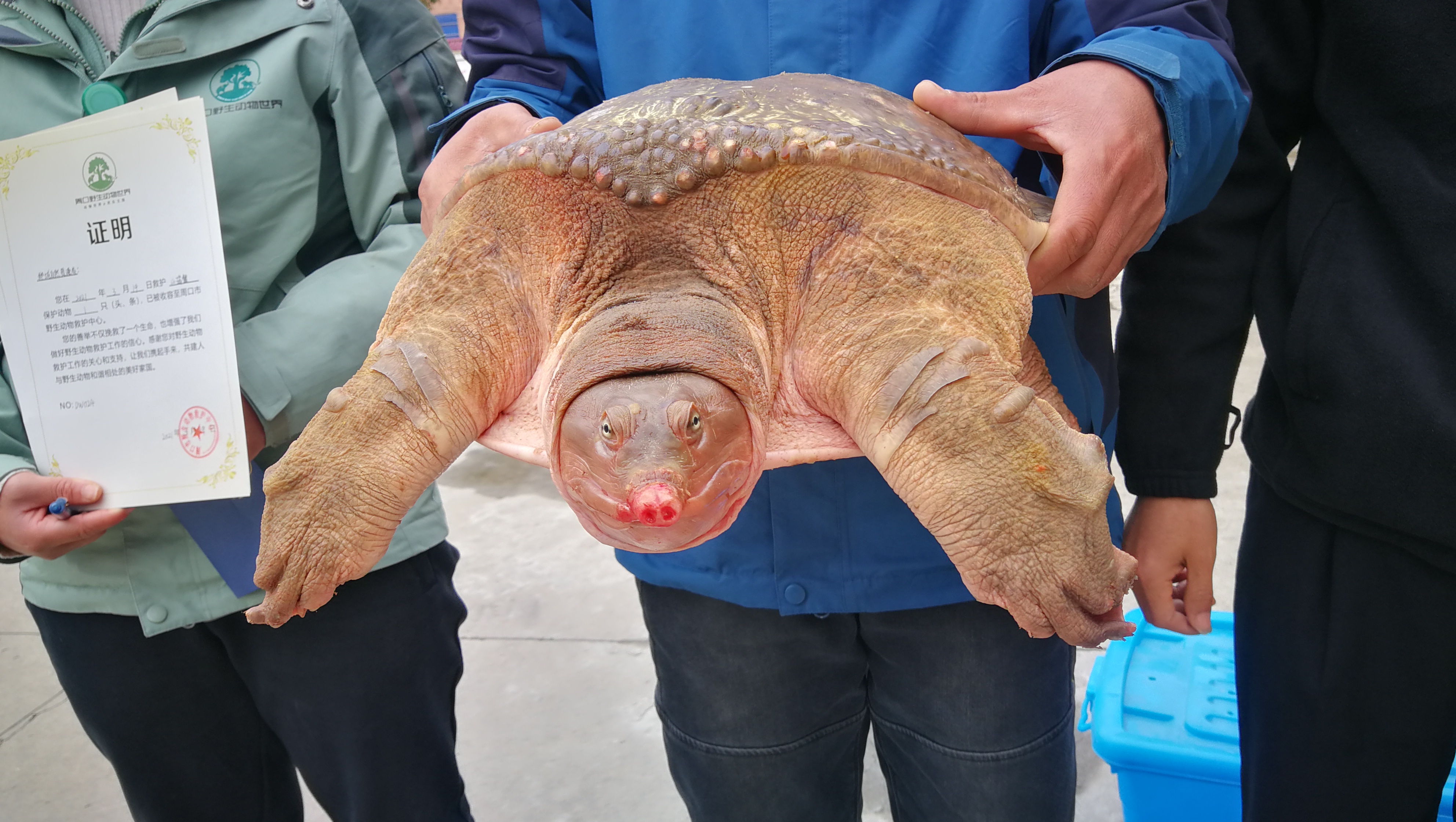 近日,鄲城縣自然資源局接到縣城市管理局公園管理辦公室工作人員救助電話,稱在人民公園岸邊又發(fā)現(xiàn)一只“大老鱉”。接到救助電話后,該局領(lǐng)導(dǎo)立即指派野生動(dòng)植物保護(hù)和自然保護(hù)地管理股工作人員前往現(xiàn)場(chǎng)救助。經(jīng)過(guò)勘察,這只“大老鱉”與3月9日救助的那只山瑞鱉一樣,屬國(guó)家二級(jí)保護(hù)動(dòng)物,長(zhǎng)度達(dá)到70厘米,重量超過(guò)30斤,頭部和腳部受傷嚴(yán)重。經(jīng)過(guò)簡(jiǎn)單消毒處理后,這只山瑞鱉被送往周口野生動(dòng)物救助中心進(jìn)行進(jìn)一步的救治。