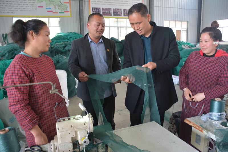 3月27日,商水縣平店鄉(xiāng)李崗村“商水縣龍巢網(wǎng)業(yè)公司”經(jīng)理羅國(guó)昌向村黨支部書(shū)記李金棋(左二)介紹漁網(wǎng)編織產(chǎn)業(yè)產(chǎn)銷帶貧情況。羅國(guó)昌和妻子劉清華2009年創(chuàng)辦漁網(wǎng)編織加工廠、2017年擴(kuò)建新區(qū),現(xiàn)有3個(gè)大型生產(chǎn)車間庫(kù)房,發(fā)展30多個(gè)分廠、40多個(gè)聯(lián)系點(diǎn),年產(chǎn)各種成品漁網(wǎng)500萬(wàn)條,產(chǎn)品銷往國(guó)內(nèi)江蘇、安微、山東、河北、湖北等10多個(gè)省區(qū)和30多個(gè)沿??h市水產(chǎn)公司,部分出口到俄羅斯及東南亞地區(qū),年創(chuàng)產(chǎn)值約1.6億元,精準(zhǔn)幫扶225戶群眾脫貧,帶貧群眾有1萬(wàn)余人。