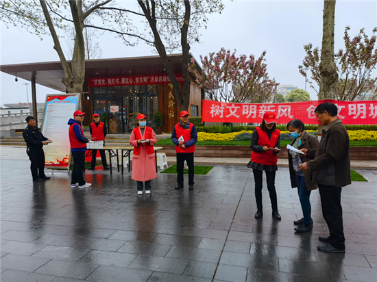 為積極創(chuàng)建全國(guó)文明城市,擦亮周口“城市文明之窗”,4月2日上午,市城市管理執(zhí)法支隊(duì)在五一廣場(chǎng)“市民驛站”前開展“樹文明新風(fēng)、創(chuàng)文明城市”宣傳活動(dòng)。