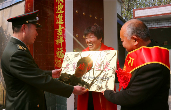 李峰說:“一張立功喜報,不僅是軍人榮譽的象征、成長進(jìn)步的見證,也承載著軍人家屬的期盼與慰藉。功臣是實現(xiàn)強軍興軍目標(biāo)的尖兵,他們在部隊建功立業(yè),我們力所能及服務(wù)保障好他們的家人,積極在全社會營造起‘功臣受愛戴、軍人受尊崇、軍屬受尊敬’的氛圍。”為此,鹿邑縣人武部積極構(gòu)建軍人軍屬榮譽體系,每逢重大節(jié)日,都要協(xié)調(diào)地方黨委、政府開展為現(xiàn)役軍人和軍屬送喜報,掛功臣匾、光榮牌等活動,通過活動激勵等形式,讓軍人軍屬享有更多的“專屬榮光”,努力營造“一人參軍,全家光榮;一人立功,全村光榮”的濃厚氛圍,更加堅定了軍屬支持子女獻(xiàn)身國防的決心,進(jìn)一步激發(fā)了鹿邑籍官兵獻(xiàn)身軍營、報效祖國的積極性。②9