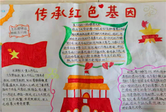 周口市實驗小學(xué)開展“傳承紅色基因,爭做時代新人”手抄報評選活動,同學(xué)們積極報名參與,把自己對黨的熱愛、對國家的熱愛書寫在一張張白色的卡紙上,內(nèi)容情真意切,激情飽滿,一張張畫面無不凸顯出少先隊員們的真情實感。