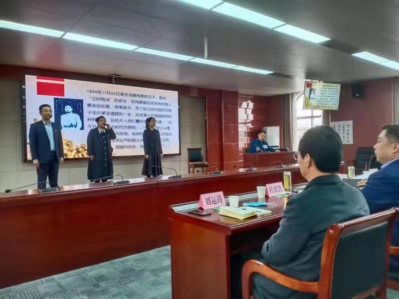 昨日,市人社局以情景局的形式在專題黨課上開展微黨課專題表演《共產(chǎn)黨員的信仰與忠誠》,專題演講了吉鴻昌同志的革命歷程?,F(xiàn)場配以吉鴻昌革命圖片,生動(dòng)形象展現(xiàn)了革命黨人為革命的信仰而獻(xiàn)身的英雄主義精神。尤其是表現(xiàn)了吉鴻昌遇刺被捕后,在獄中受盡酷刑,面對敵人的威逼利誘,始終堅(jiān)貞不屈。留下了“恨不抗日死,留作今日羞,國破尚如此,我何惜此頭”的千古絕唱,愛國精神激勵(lì)著我們永遠(yuǎn)奮勇前行。