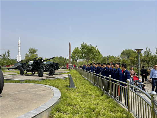 5月4日上午,天氣晴朗。在周口公園,周口市城鄉(xiāng)一體化示范區(qū)消防大隊(duì)的青年消防隊(duì)員們通過跑步訓(xùn)練等方式慶祝五四青年節(jié)。消防隊(duì)員欒慶帥告訴記者:“今天是五四青年節(jié),我們通過訓(xùn)練、參觀國防設(shè)施這樣的方式,來表達(dá)我們的愛國熱情。”②9
