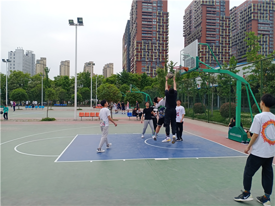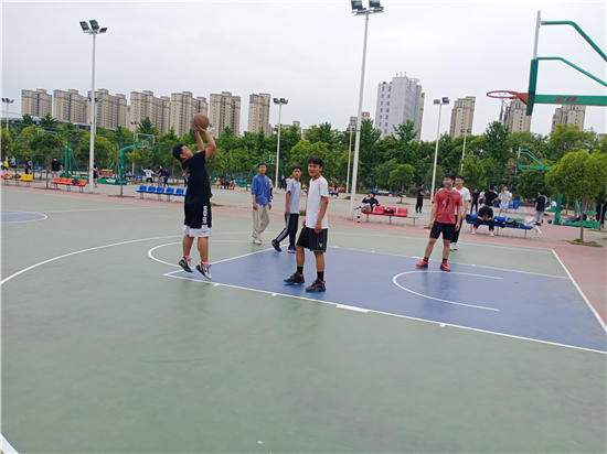 5月2日,記者在周口市體育中心籃球場(chǎng)地看到,市民們?cè)诩偃绽镞M(jìn)行體育鍛煉的熱情不減,他們紛紛來(lái)到籃球場(chǎng)打起了籃球,既鍛煉了身體,又度過(guò)了一個(gè)有意義的假期。②9