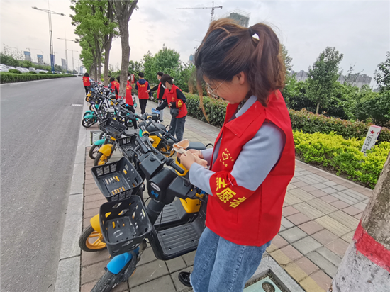 當(dāng)天上午,由河南科技職業(yè)大學(xué)志愿者組成的綠色低碳騎行隊(duì)伍,從河南科技職業(yè)大學(xué)正門出發(fā)騎行,用實(shí)際行動(dòng)宣傳愛護(hù)地球、倡導(dǎo)綠色騎行的理念。騎行結(jié)束后,志愿者們組成宣傳引導(dǎo)隊(duì)伍,走上大街,引導(dǎo)、糾正共享單車規(guī)范停放,對(duì)不規(guī)范停放的共享單車進(jìn)行整齊擺放,清理共享單車上亂張貼的小廣告,繼續(xù)開啟當(dāng)日第二場共享單車宣傳引導(dǎo)志愿服務(wù)活動(dòng)。