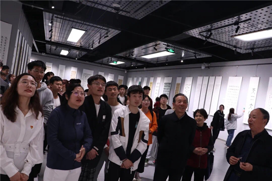 觀看過程中,離退休工作處理科支部四位老教師為同學們認真講解每幅書法作品的來源和深義,將美育與黨史學習教育充分結(jié)合,以書法為媒向在場學生展開愛國主義教育、理想信念教育和革命傳統(tǒng)教育。