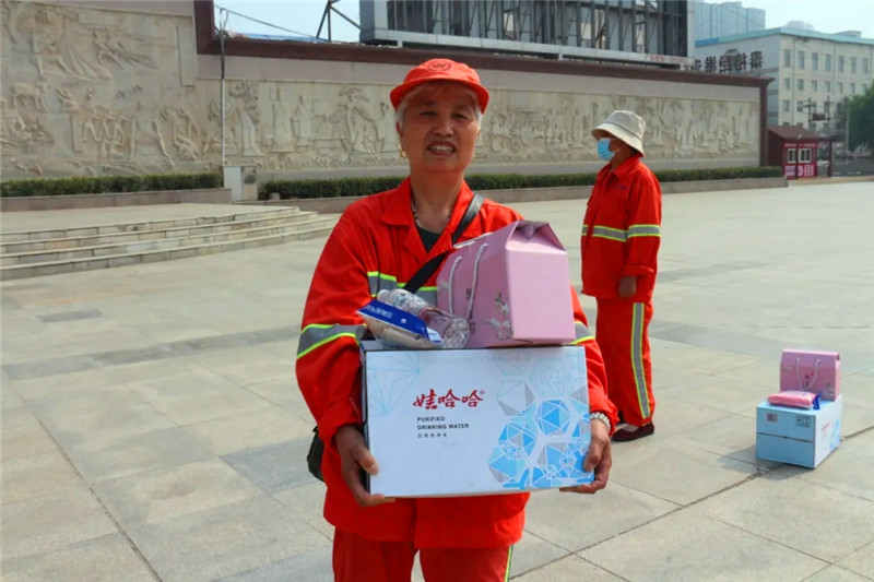 此次活動,中原眾恒集團(tuán)為100余名環(huán)衛(wèi)工人代表送去精心準(zhǔn)備的粽子禮盒、礦泉水、毛巾、香皂等慰問品,并向在高溫酷暑下辛勞工作的一線環(huán)衛(wèi)工人致敬,感謝他們?yōu)橹芸诔鞘协h(huán)境衛(wèi)生所做出的貢獻(xiàn)。