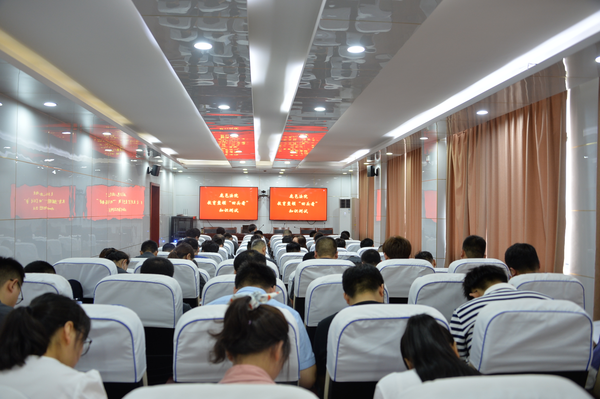 為鞏固和深化政法隊(duì)伍教育整頓成果,7月20日上午,鹿邑縣人民法院組織開展隊(duì)伍教育整頓“回頭看”應(yīng)知應(yīng)會(huì)知識(shí)測(cè)試,全體干警參加測(cè)試。