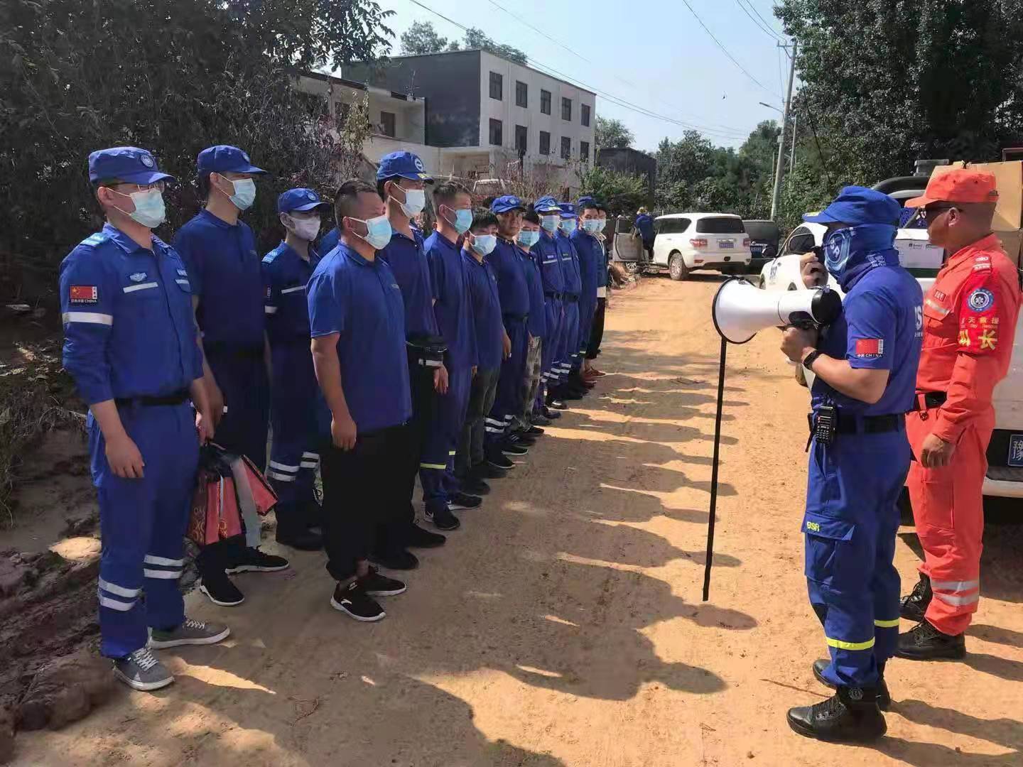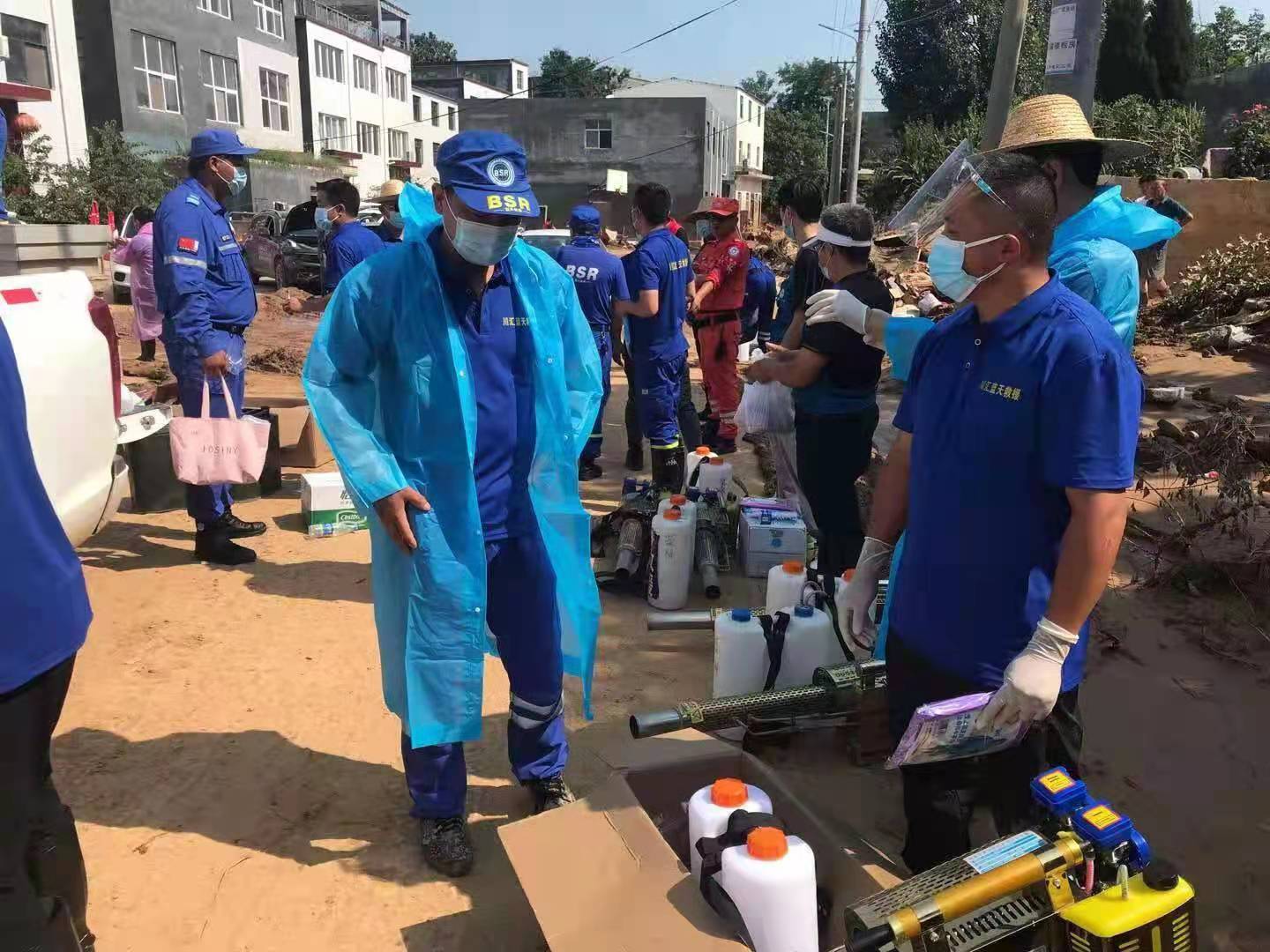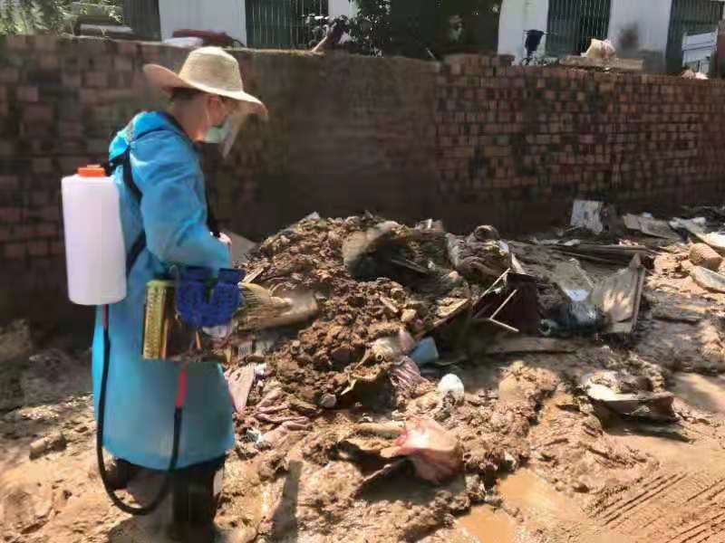 7月29日上午10時,在隊長肖永德的帶領(lǐng)下,周口川匯藍天救援隊30名隊員趕赴鄭州滎陽受災(zāi)較重的賈峪鎮(zhèn)賈峪村進行災(zāi)后消殺工作。