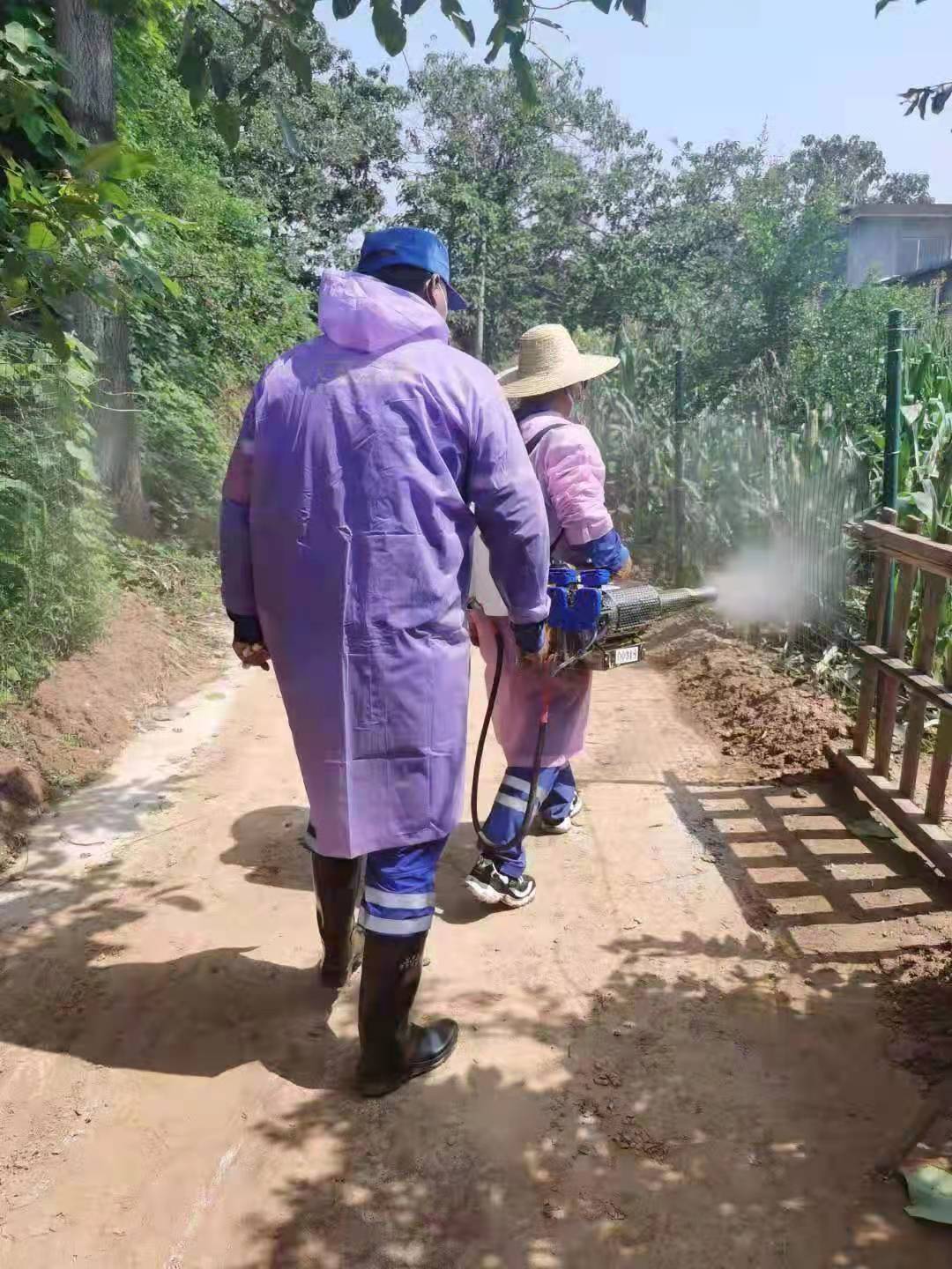 到達賈峪村后,隊員們在村支書的帶領(lǐng)下立即投入消殺作業(yè)。29日下午,在賈峪鎮(zhèn)北溝社區(qū)消殺400多戶,30日上午,在賈峪村消殺17個組900多戶,累計消殺面積約十五萬平方米,受益群眾6000多人,受到了當?shù)匕傩盏臒崃覛g迎。