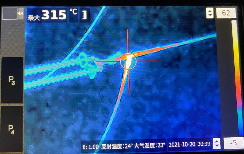 “蓮鄺線#19桿塔A相引流板連接螺栓發(fā)熱315℃,這屬緊急缺陷,需要立即處理!”10月20日晚,國網(wǎng)周口供電公司輸電運檢中心在對110千伏蓮鄺線六級電網(wǎng)風(fēng)險保電夜巡過程中,發(fā)現(xiàn)蓮鄺線#19桿塔A相引流板存在打火現(xiàn)象。