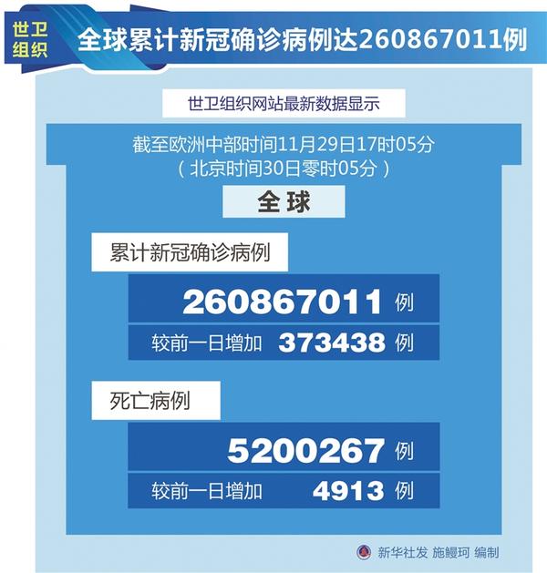 全球累計(jì)新冠確診病例達(dá)260867011例