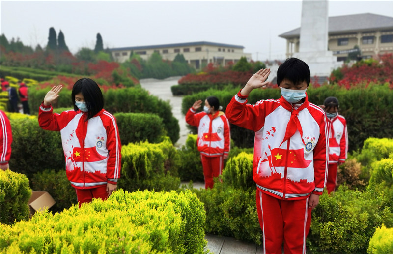 當日10時30分許,學生代表身著校服,列隊整齊,向革命烈士敬獻獻花、集體默哀、莊重宣誓,深刻感受革命先輩為民族解放而英勇獻身的崇高精神。