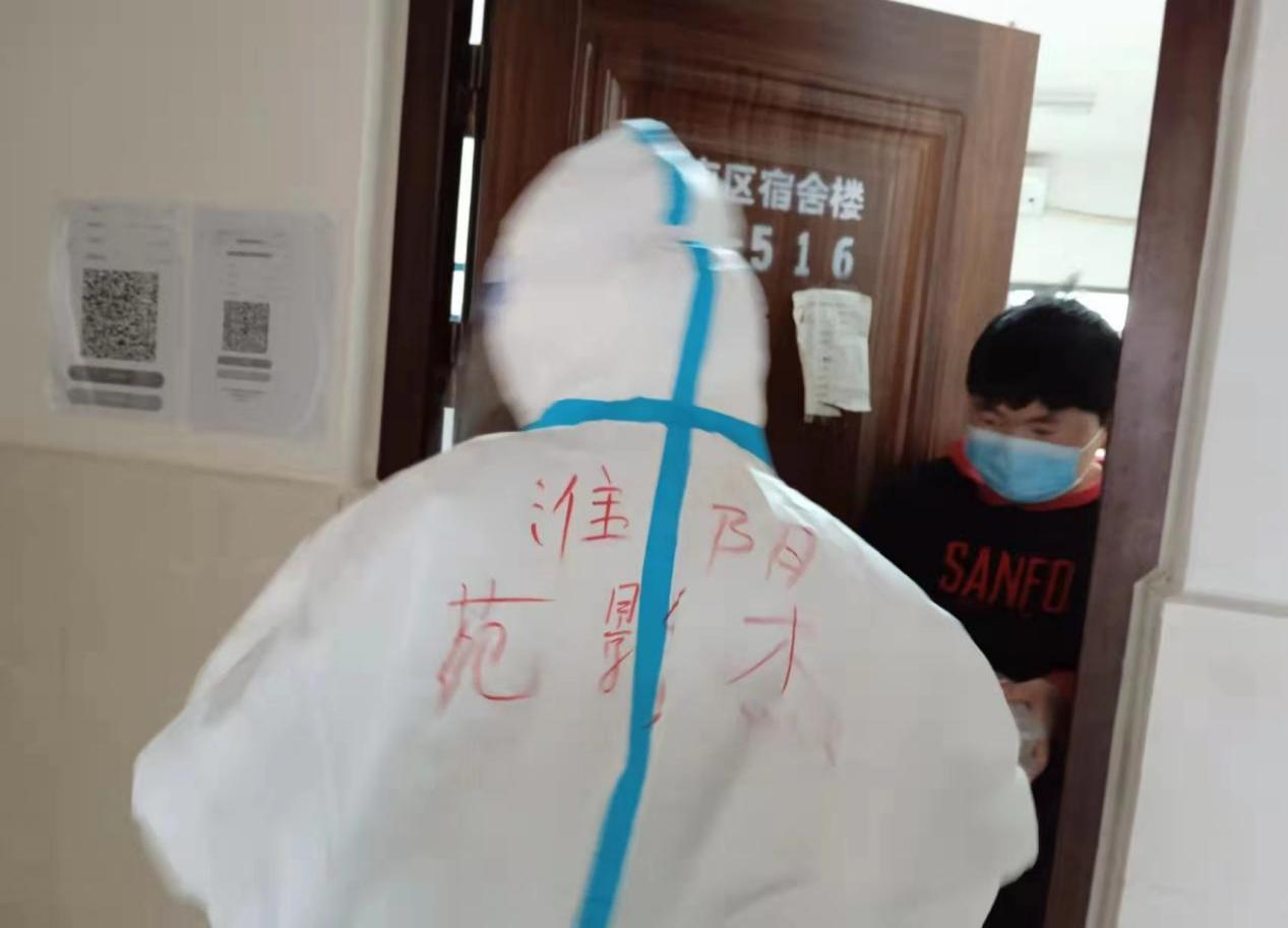 • 3月25日夜,天空下著小雨,李碧瑩和同事們乘車到市衛(wèi)生健康委員會集合,與其他醫(yī)院的50多名同仁一道,凌晨4點從周口出發(fā),早上7點到達太康,簡單吃點早餐后,便開始緊張的核酸檢測采集工作。