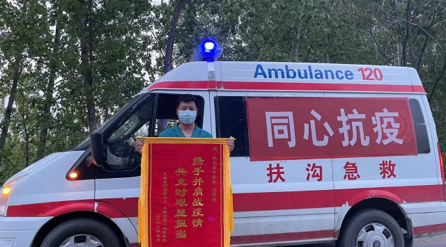 • 劉國輝,扶溝縣中醫(yī)院120司機。3月22日,他在工作時接到院領(lǐng)導(dǎo)電話,得知太康縣新冠肺炎疫情嚴重,需要120車輛支援轉(zhuǎn)運工作。聽到這個消息,劉國輝第一反應(yīng)就是要參加抗疫。