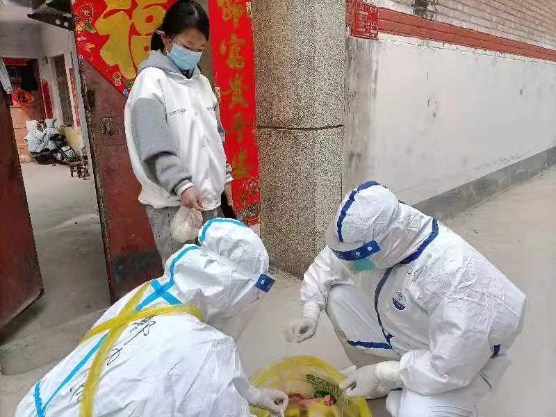 到達太康后,王群禮被分到了城關回族鎮(zhèn)封控區(qū)進行入戶核酸采集,當時的他也很緊張,認真地穿防護服,熟記采集核酸的每一個動作要領,然后投身抗疫最前線。在入戶采樣的時候,王群禮發(fā)現有一個小女孩獨自在家,她每次聽到敲門聲都是先開一點縫,悄悄觀察外面,當看到是防疫人員時,才慢慢打開門?!拔铱梢钥闯鏊目謶趾蜔o助,不知道她晚上怕不怕,會不會做飯,問她怎么吃飯,她也不說話,我心里很不是滋味?!睆哪翘扉_始,王群禮每次入戶采核酸的時候,就幫她帶點吃的,王群禮會把他的早餐留給她,還把自己的水果、零食也都送給她。