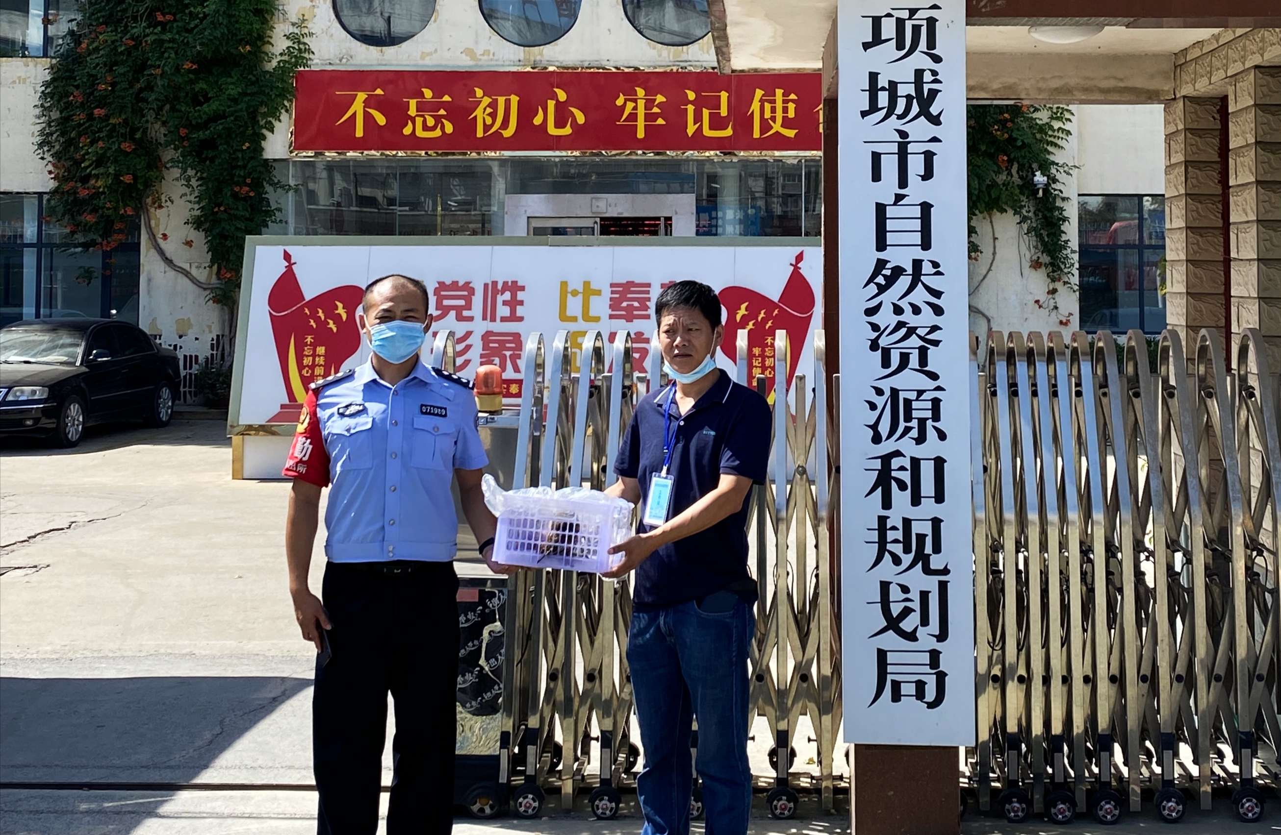8月14日9時(shí)許,天氣炎熱,項(xiàng)城市公安局水寨派出所一民警駕車(chē)來(lái)到項(xiàng)城市自然資源和規(guī)劃局,向野生動(dòng)物保護(hù)人員張向忠現(xiàn)場(chǎng)移送一只受傷的斑頭鵂鹠。
