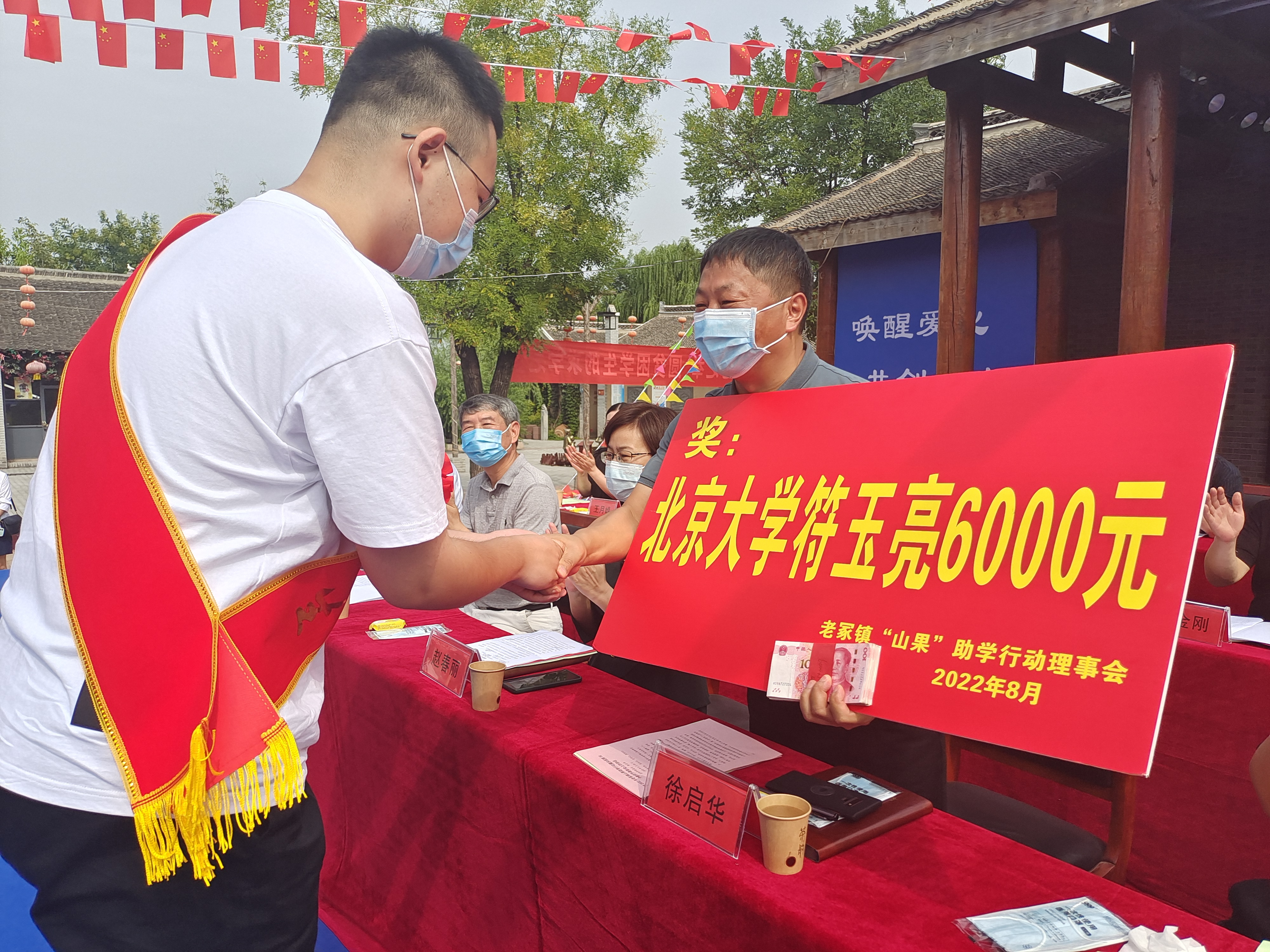 圖片說明:8月20日上午,太康縣老冢鎮(zhèn)2022年“山果”助學(xué)行動暨慶祝第38個教師節(jié)表彰大會在老冢鎮(zhèn)劉寨印象舉行,對9個尊師重教先進(jìn)行政村、8個教育工作先進(jìn)單位、63名優(yōu)秀教師、100名優(yōu)秀中小學(xué)生、1名2022年考入北京大學(xué)的研究生,及17名被雙一流高校錄取的大一新生進(jìn)行了表彰,共發(fā)放獎學(xué)獎教資金10.36萬元,詠絮書畫院向獲獎學(xué)生贈送了書畫作品。會前,與會人員共同觀看了文藝匯演和《美麗鄉(xiāng)村看老?!芳o(jì)錄短片。