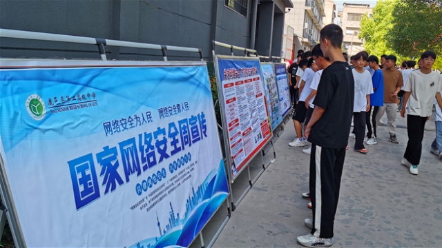 9月6日是國家網(wǎng)絡(luò)宣傳周校園日,鹿邑縣第二高級中學(xué)校園里整齊地擺放出數(shù)塊制作精美、內(nèi)容充實的網(wǎng)絡(luò)安全宣傳展板,引起師生們駐足觀看。