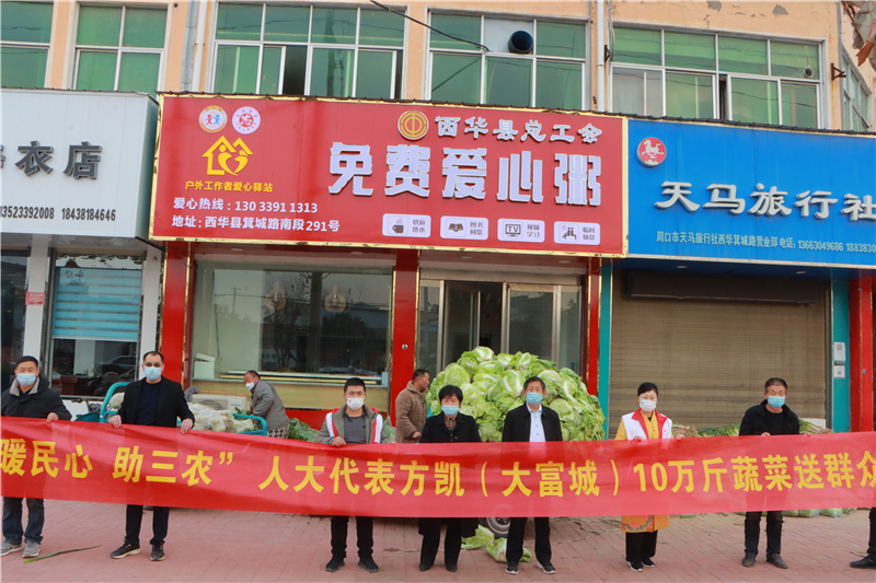 近日,方凱了解到西華縣黃橋鄉(xiāng)菜農(nóng)蔬菜滯銷的問(wèn)題,便立即到現(xiàn)場(chǎng)察看,當(dāng)即決定幫助菜農(nóng)解決蔬菜滯銷難題,購(gòu)買10萬(wàn)斤蔬菜,并將這些蔬菜捐贈(zèng)給縣人民醫(yī)院、中醫(yī)院、敬老院等單位。