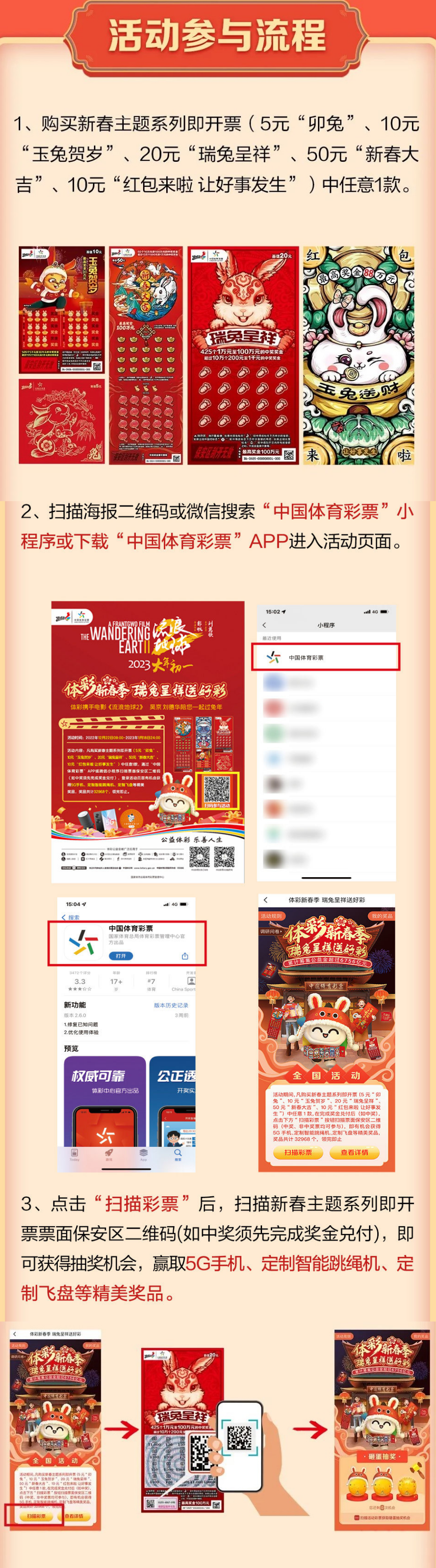 2.“體彩新春季”全國促銷活動細則詳見“中國體育彩票”微信小程序或“中國體育彩票”APP活動頁面,或登錄中國體彩網(wǎng)查詢相關(guān)信息。
