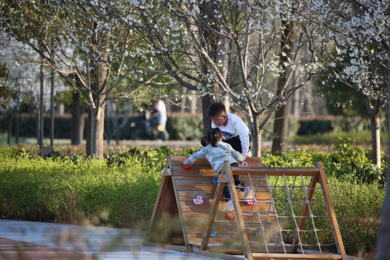 • 春風(fēng)拂面,百花盛開,明媚的春光里,居民們紛紛走上街頭,來到家門口的公園里,徜徉在花海中,或拍照留念,或嬉戲玩耍。