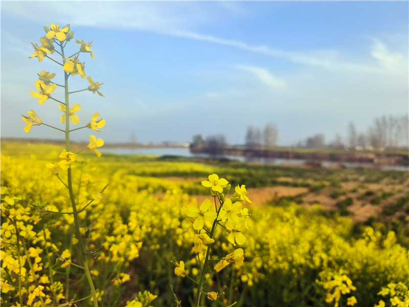 • 4月2日,春日明媚,沙潁河兩岸一片片金燦燦的油菜花“染黃”了大地,空氣中彌漫著香氣,大片的油菜花和漂亮的村居、田間勞作的農(nóng)民交織在一起,如詩(shī)如畫,美不勝收,讓人心曠神怡。