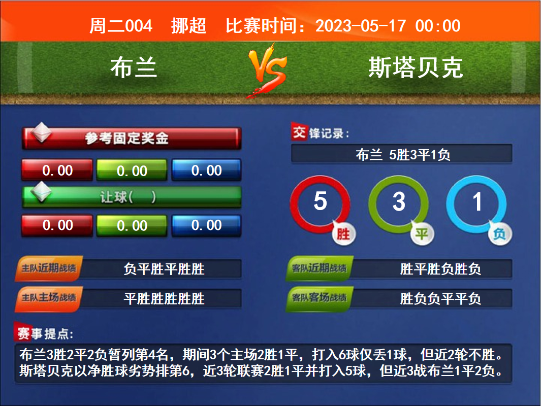 周二004 挪超 布蘭VS斯塔貝克