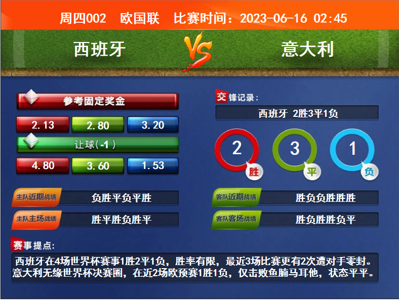 周四002 歐國(guó)聯(lián) 西班牙VS意大利