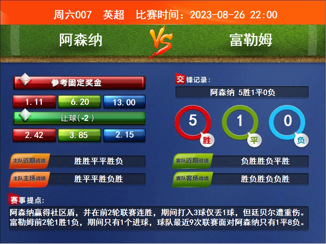 周六007 英超 阿森納VS富勒姆