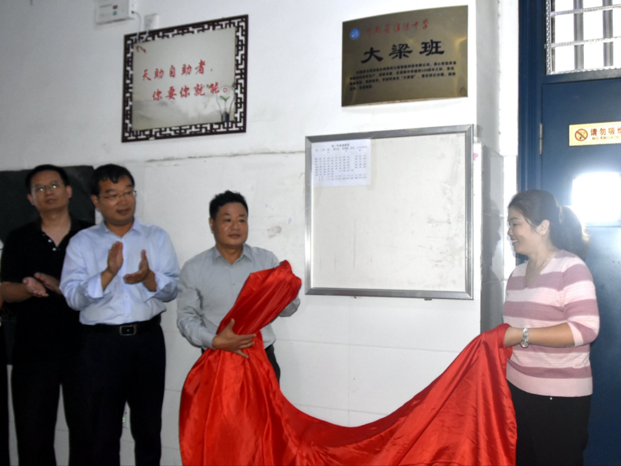 最后,梁亮和班主任程艷麗老師一起為“大梁班”揭幕,與會(huì)人員和班級(jí)全體同學(xué)見證了這一歷史時(shí)刻。
