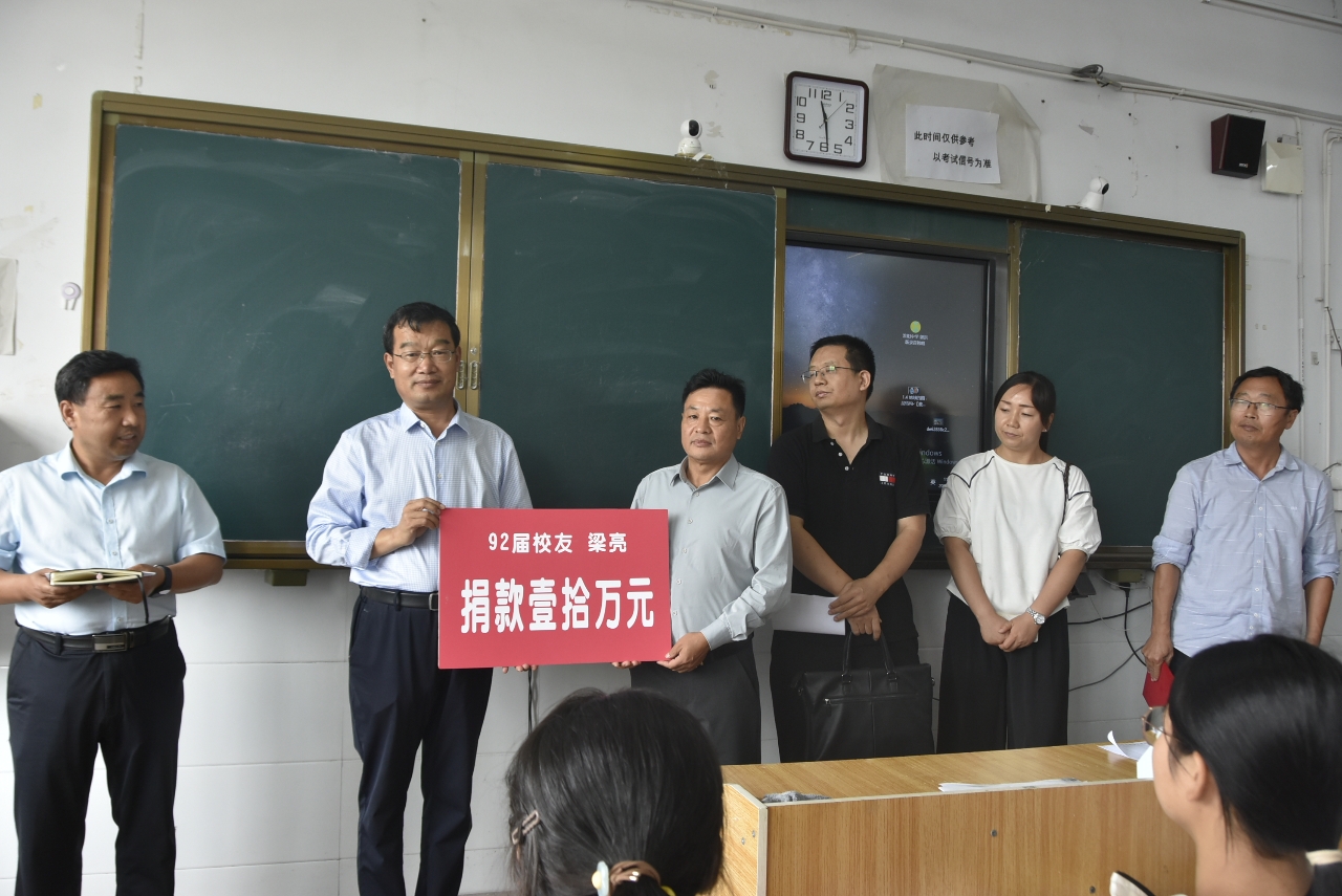 梁亮在發(fā)言中回憶了自己在母校求學(xué)時(shí)的點(diǎn)點(diǎn)滴滴,他感恩母校老師當(dāng)年的辛勤培養(yǎng),解釋了捐贈(zèng)的初衷,并莊嚴(yán)承諾:只要自己的企業(yè)不倒閉,就會(huì)把這項(xiàng)公益事業(yè)一直做下去。他希望“大梁班”全體同學(xué)聽老師的話,做規(guī)范的事。不怕苦,不怕累,找對(duì)學(xué)習(xí)方法,合理分配時(shí)間,想法設(shè)法提高學(xué)習(xí)效率,抵制一切不良誘惑,一心用在學(xué)習(xí)上。他祝愿全體同學(xué)都能考入自己理想的大學(xué),一定會(huì)實(shí)現(xiàn)自己的夢(mèng)想!